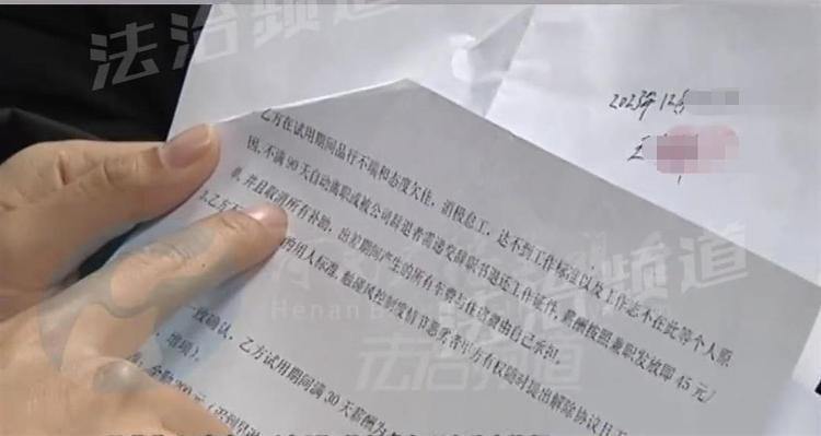 據(jù)河南當(dāng)?shù)孛襟w報(bào)道,鄭州一家網(wǎng)絡(luò)科技公司的員工稱,自己僅上班10天就被辭退,最后只發(fā)了45元的工資,公司相關(guān)負(fù)責(zé)人出示了員工簽的離職申請書和對工資無異議的證明,對此,當(dāng)事員工表示,這些不是自愿寫的,有脅迫之意。2024年1月1日,轄區(qū)勞動(dòng)保障監(jiān)察部門人士稱,若員工在被人脅迫下寫的離職申請書,是無效的,但也要拿出被脅迫的證明。